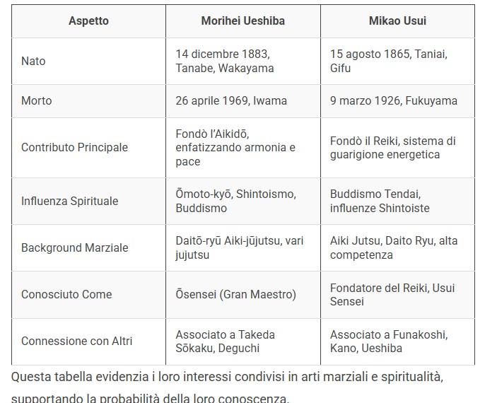 Usui Sensei era associato a molte persone dai più alti valori spirituali. Alcune erano personaggi famosi in Giappone, ad esempio Morihei Ueshiba (fondatore dell’Aikido), Onasiburo Deguchi (fondatore della religione Omoto) e Toshihiro Eguchi (che fondò la sua religione).